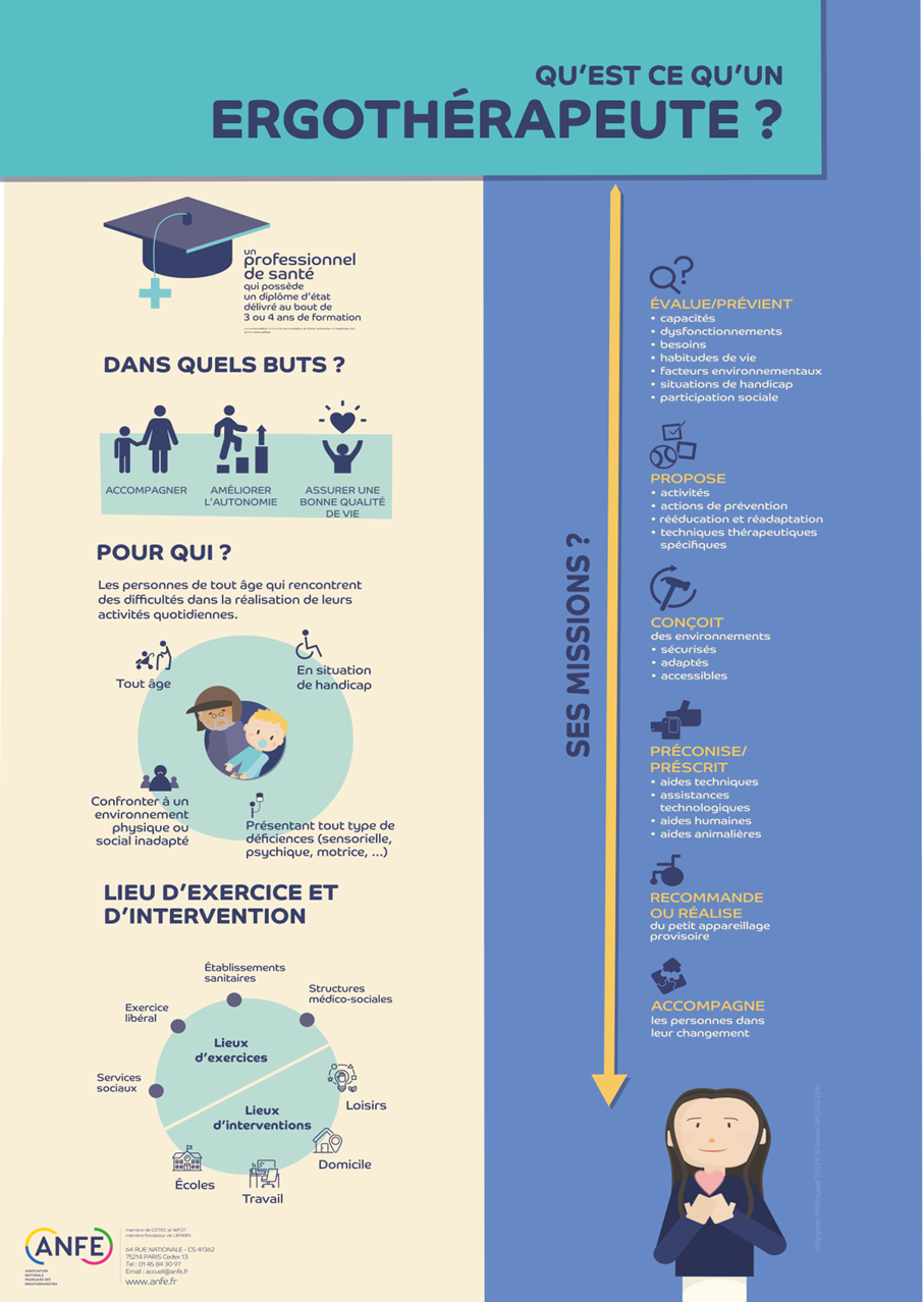 L'ergothérapie est une profession de santé (reconnue par le Code de la santé publique : Loi n°95-116 du 4 février 1995) qui place les activités quotidiennes (occupations) au cœur de votre bien-être. Elle s'adresse à toute personne dont l'autonomie est impactée par une maladie, un handicap ou une situation de vie particulière.