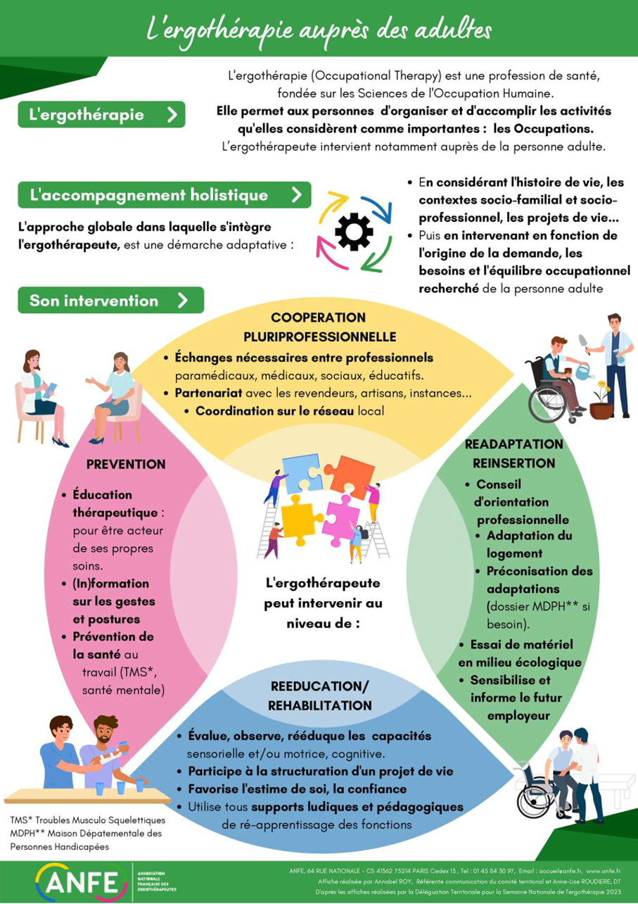 L'intervention de l'ergothérapeute repose sur l'interaction entre trois piliers indissociables :