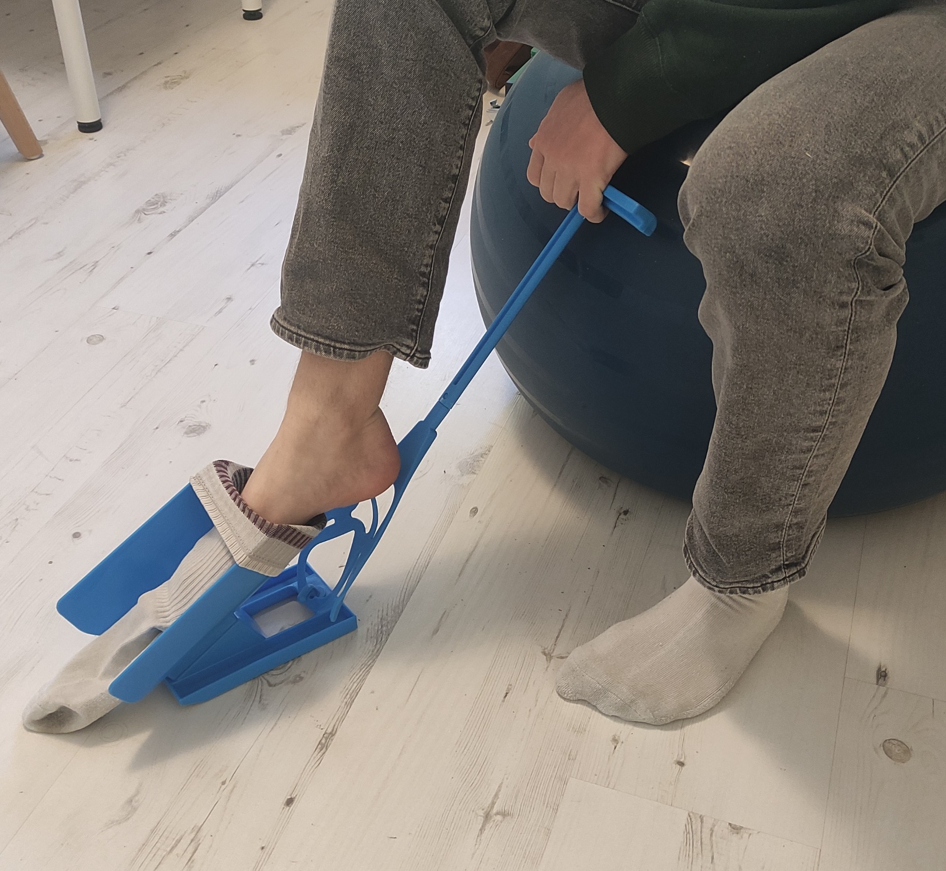 Apprentissage à utiliser un enfile-chaussette pour maintenir l'autonomie au domicile